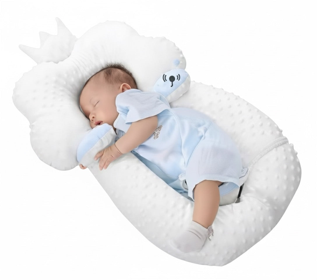 Soothe your little one with ergonomic head support designed for comfort and care. This baby pillow helps distribute pressure evenly with a gentle central cradle, while plush side wings softly support the head and shoulders—keeping your baby relaxed during supervised rest.